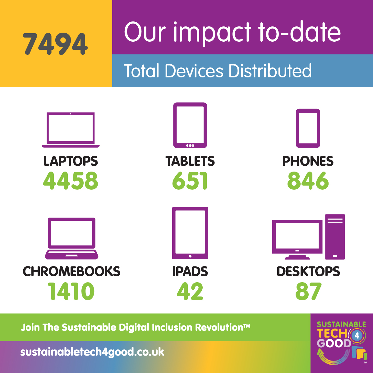 Our raison d’être at Sustainable Tech 4 Good is to get digital devices into the hands of those who need them most, whilst also saving needless CO2 emissions, e-waste and the extraction of scarce, precious raw materials #leavenotrace.